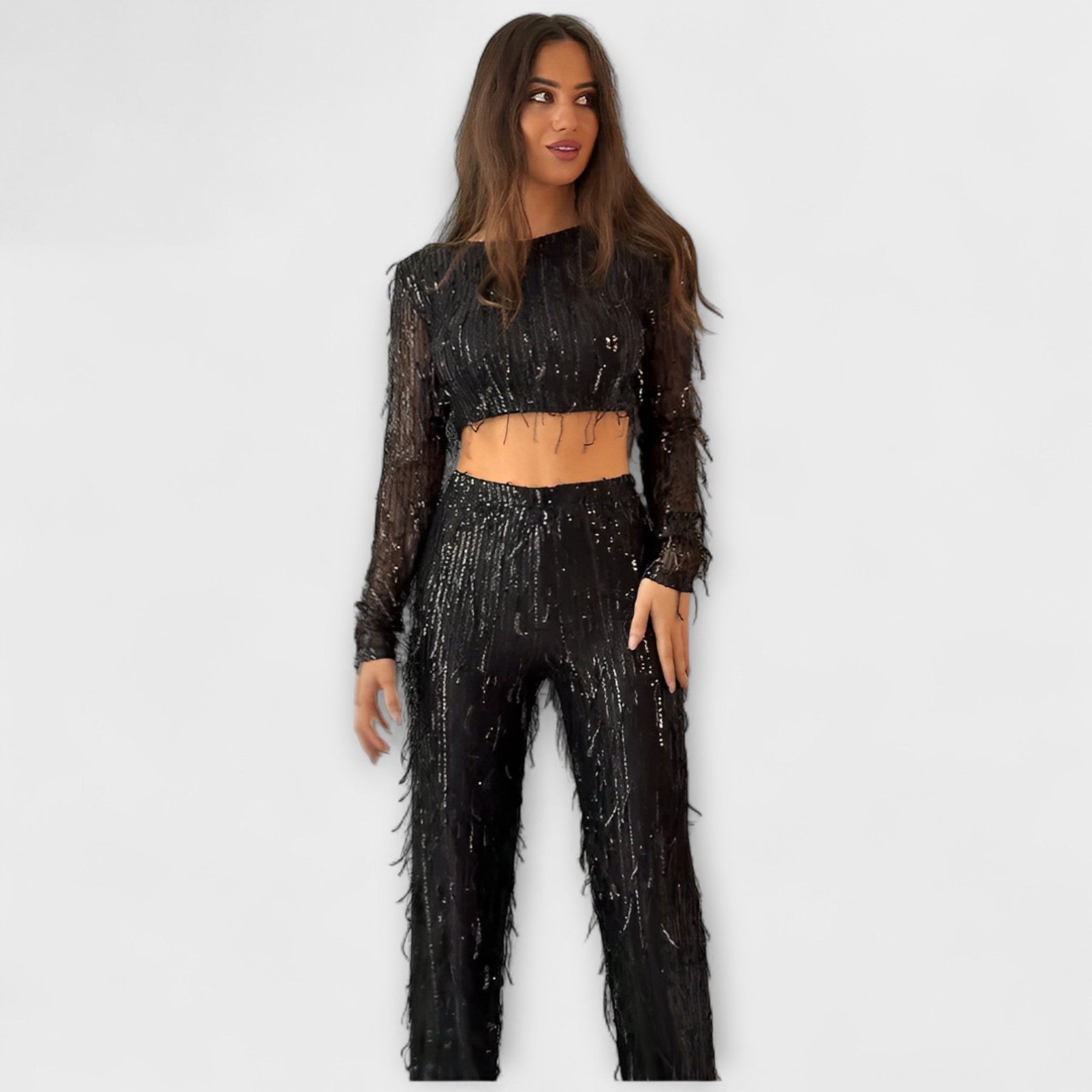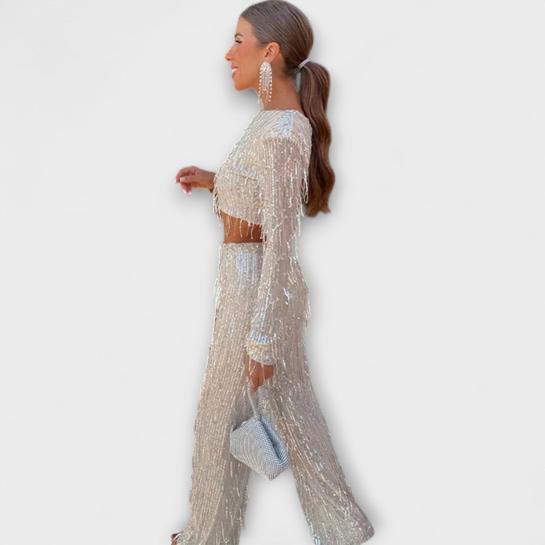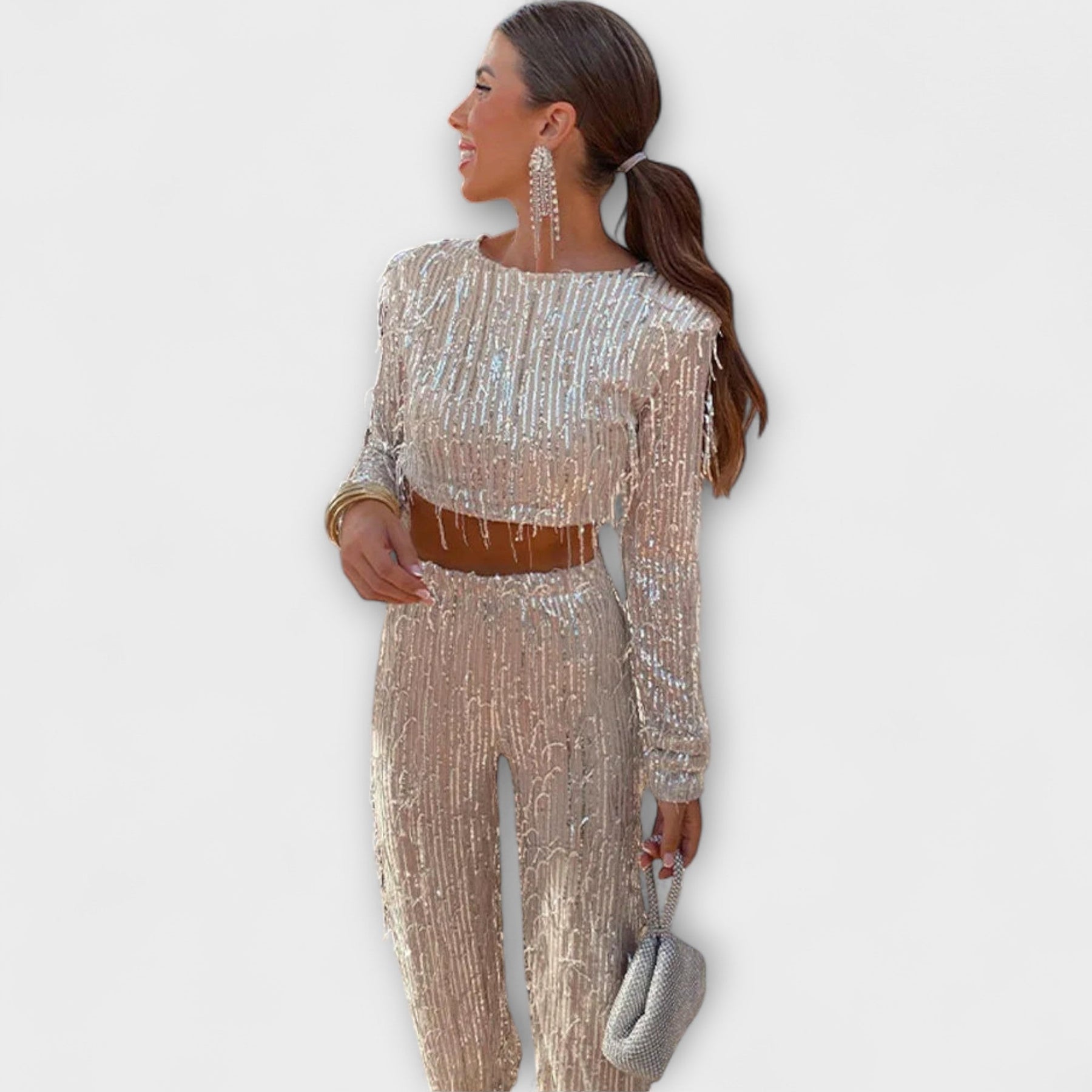 El conjunto de lentejuelas Emily para mujeres es la elección perfecta para todas aquellas que desean atraer la atención con estilo. El brillante top y la falda están ambos forrados con tela suave, lo que garantiza comodidad toda la noche y al mismo tiempo irradia elegancia y autoconfianza. Ideal para ocasiones festivas, cenas o noches especiales.