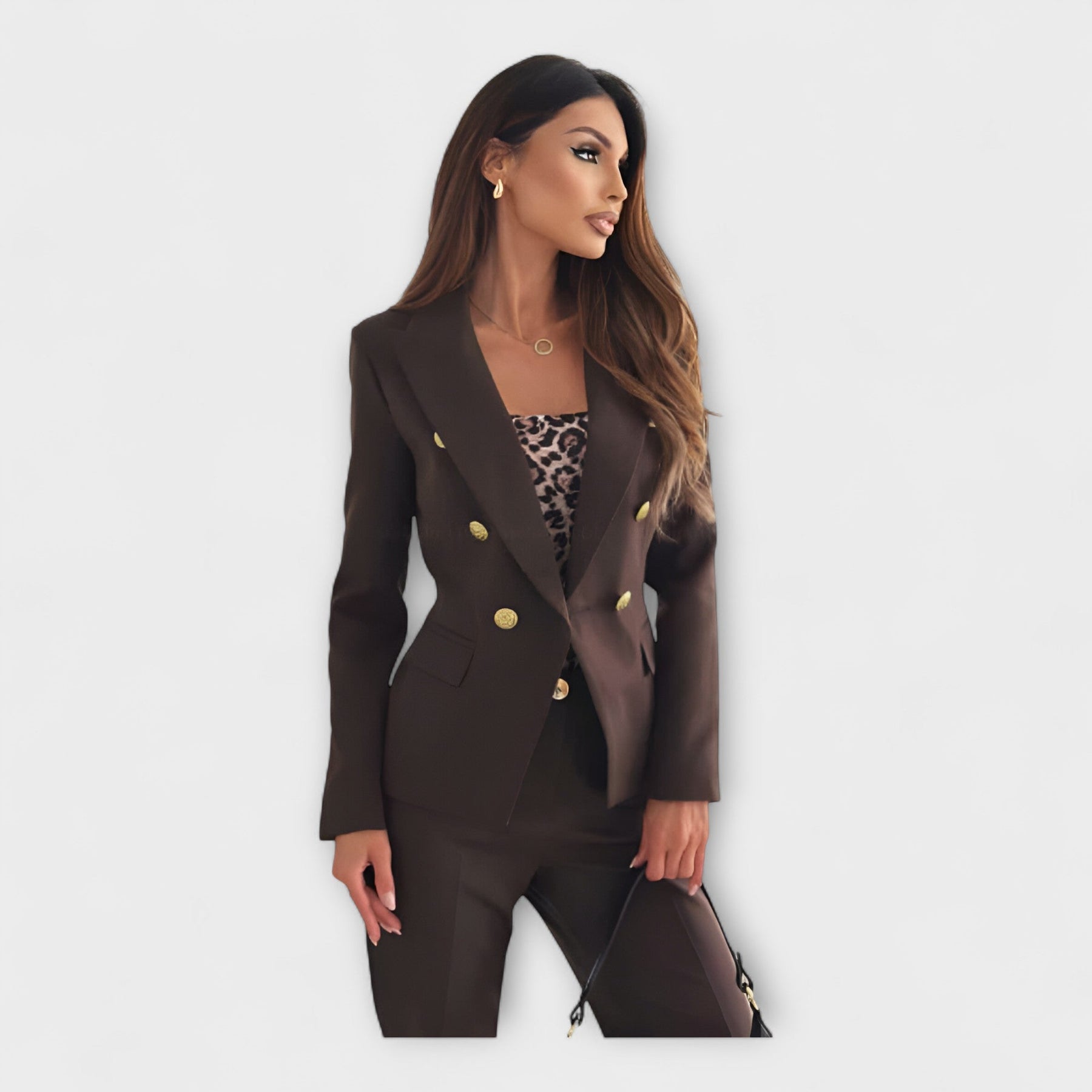 El conjunto de dos piezas de Mina combina un estilo moderno con una comodidad agradable al usar. El atuendo consiste en una parte superior perfectamente combinada y un pantalón, ideal para mujeres con sentido de la moda que valoran una imagen armoniosa. Ya sea en el día a día, en la oficina o de paseo por la ciudad, este look es realmente llamativo.