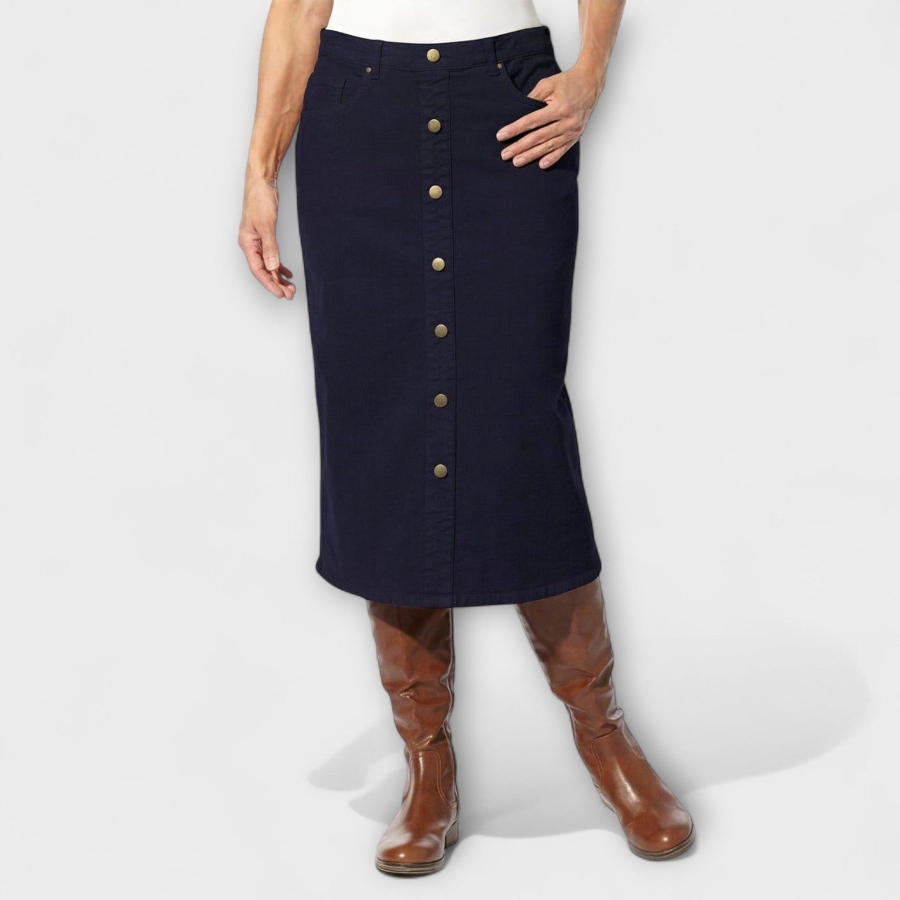 La falda de pana Cristina es de elegancia atemporal y confort práctico. Con suave textura de terciopelo y su corte clásico, es perfecta tanto para el día a día como para ocasiones más formales. Una elección estilosa para cualquier armario.