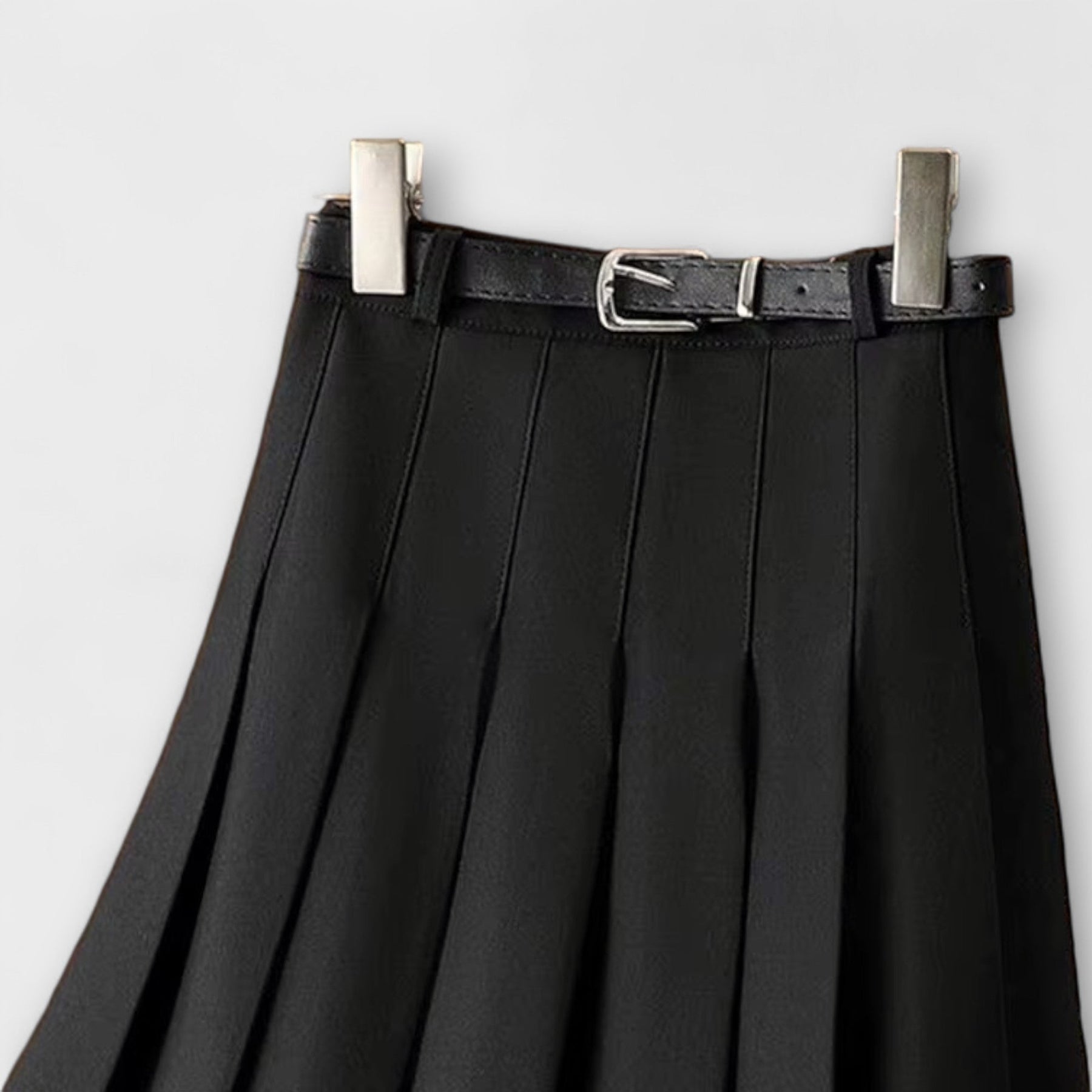 La falda plisada Stella con cinturón combina estilo clásico con un toque moderno. El corte halagador y el cinturón ajustable realzan la cintura, mientras que los ligeros pliegues en cada movimiento aportan elegancia. Ideal para el día a día o ocasiones especiales.