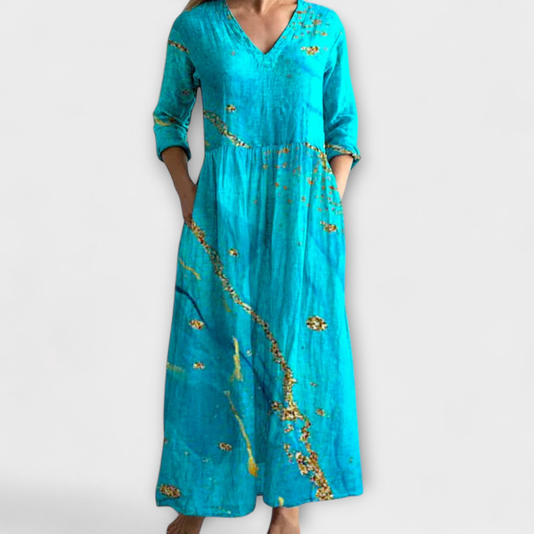 El vestido Fedora combina la ligereza veraniega con un patrón floral atemporal. Ideal para días cálidos y apariciones elegantes en la vida cotidiana o en ocasiones especiales. El escote en V y el material ligero garantizan una sensación agradable al usarlo y un look femenino.